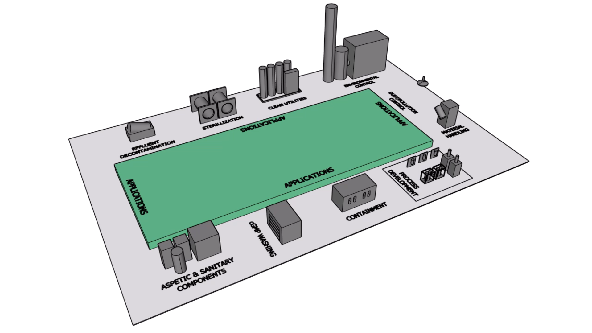 Water-based pharmaceutical spray cleaning facilities that meets all pharmaceutical applications with variable functions such as hot air drying, plasma, ultrasonic cleaning, high containment execution, decontamination execution and more