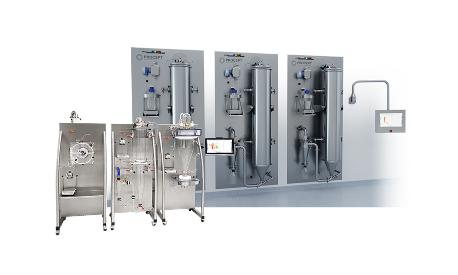 Units can be integrated on a trolley or wall-mounted, whether its a Spray Dryer, Pan Coater or Fluid Bed, enabling a modular system offering full flexibility in installation.