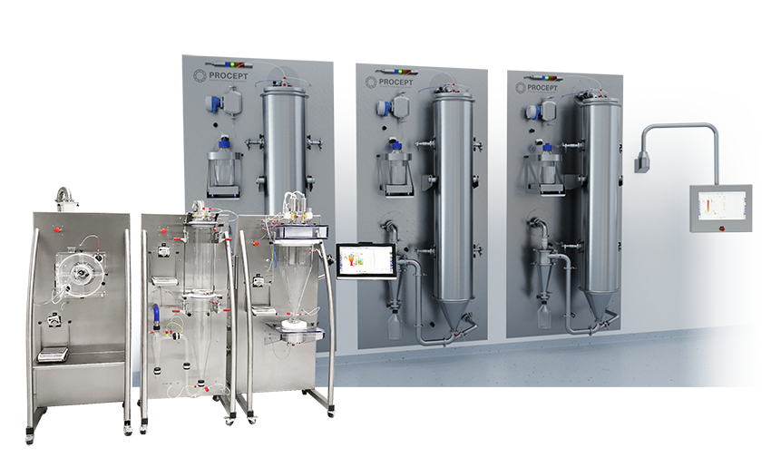 Units can be integrated on a trolley or wall-mounted, whether its a Spray Dryer, Pan Coater or Fluid Bed, enabling a modular system offering full flexibility in installation.